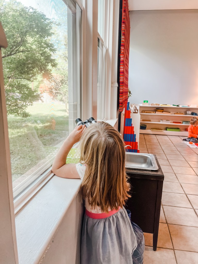 The Toddler Classroom, for children ages 2-3, is a joyful space where teachers begin to introduce the Montessori concepts, but still prioritize social-emotional growth, gross motor play, fun, and curiosity. They follow their own schedule as needed. The day consists of a shorter lesson time of 1-1.5 hours with group time for songs and stories, art, socialization, and snacks. There is an extra outdoor activity in the morning and a short afternoon break, weather permitting.